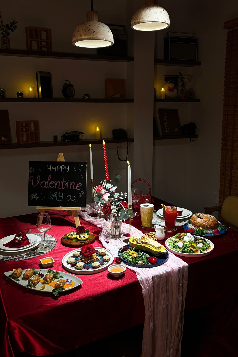 Đây không chỉ là một bàn ăn được trang trí, mà là một góc nhỏ được chuẩn bị riêng cho hai người — nơi những khoảnh khắc riêng tư diễn ra một cách tự nhiên và chân thành.